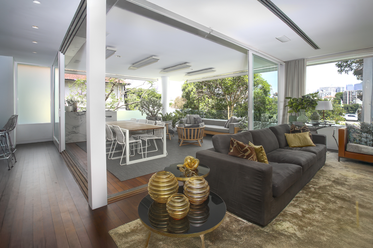 Miscellaneous works included restoration of external sliding doors and door hardware to the undercover terrace, repurposing the original automatic hardware with a manual override and new bedroom robe/bedhead joinery to match existing unit joinery. General make good to all bathrooms, laundry, bedrooms, living/dining areas including painting, re-polish floorboards, regrouting tiles and installing new flush plaster set downlights.